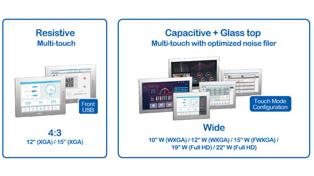 - Betjening: Utstyrt med PCAP multi-touch-skjerm for jevn og intuitiv geststyring (gjelder kun widescreen-modeller)