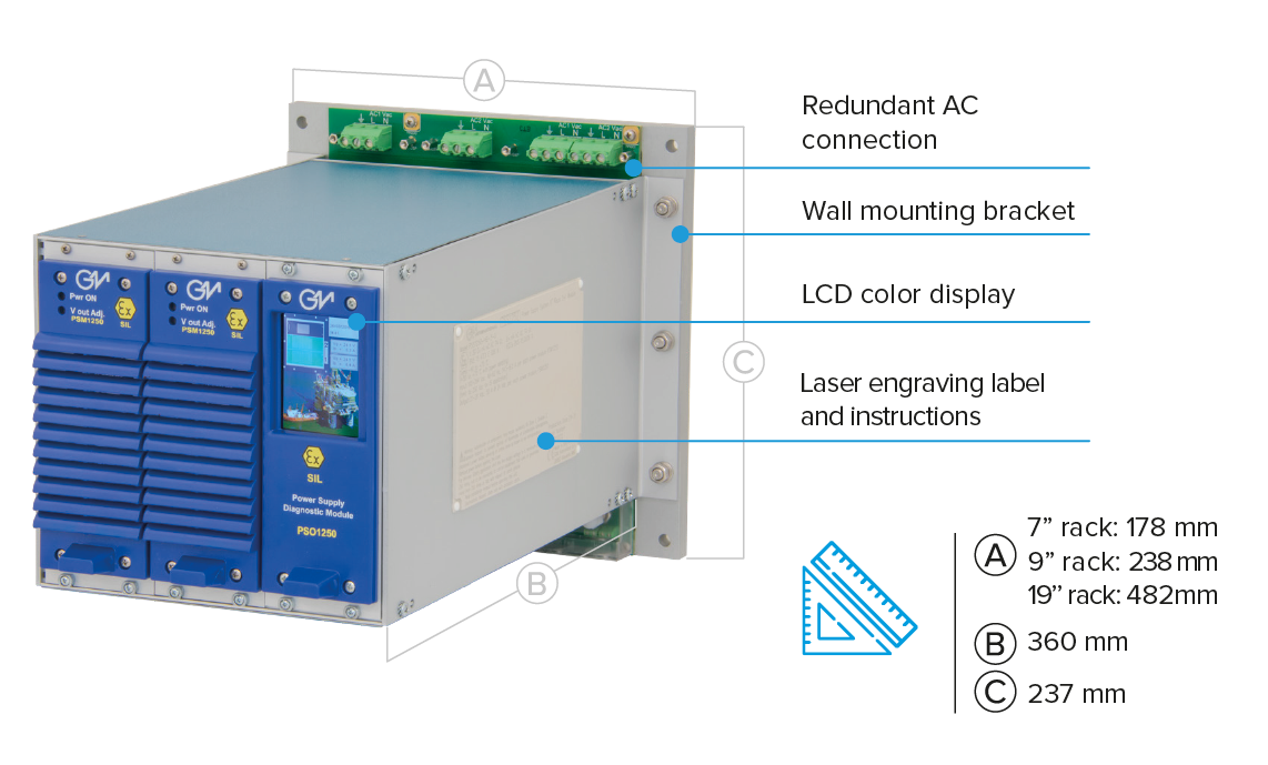 GMI’s PSS1250-serie er et SIL3-sertifisert, modulært, 24Vdc strømforsyningssystem med kapasitet opptil 3600W i redundans som kan plasseres i Ex Sone 2.